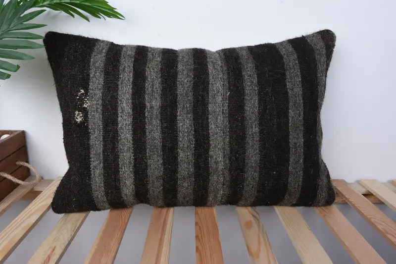 Braun-weiß gestreiftes Wurfkissen, 16x24 besticktes Leinenkissen