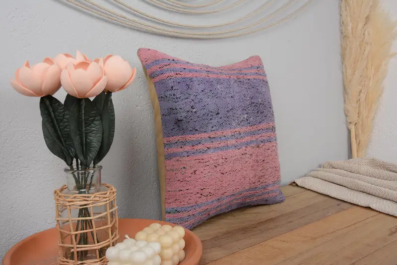 Handgefertigtes besticktes Kissen, Vintage gestreiftes Leinenkissen
