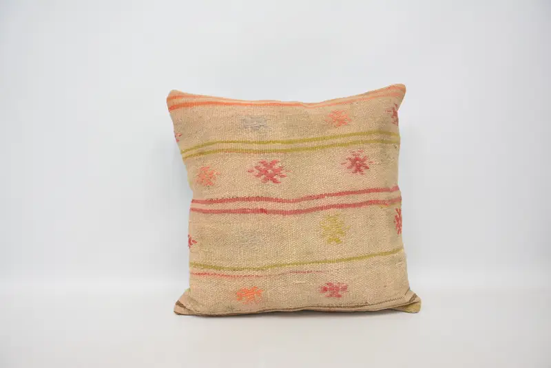 Beige & Grün besticktes Wurfkissen, handgemachtes Hanfkissen