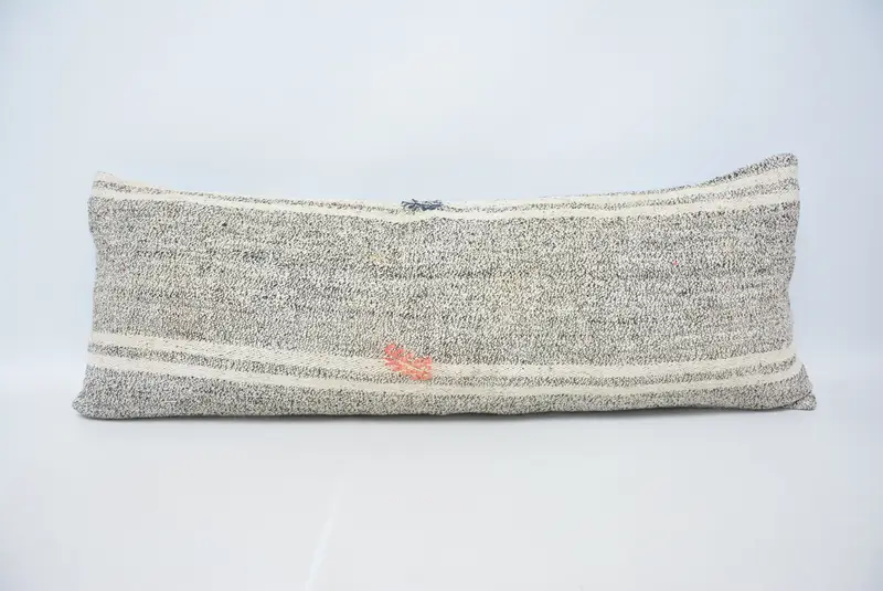 Braun-weiß gestreiftes Wurfkissen, 16x42 handgemachtes Hanfkissen