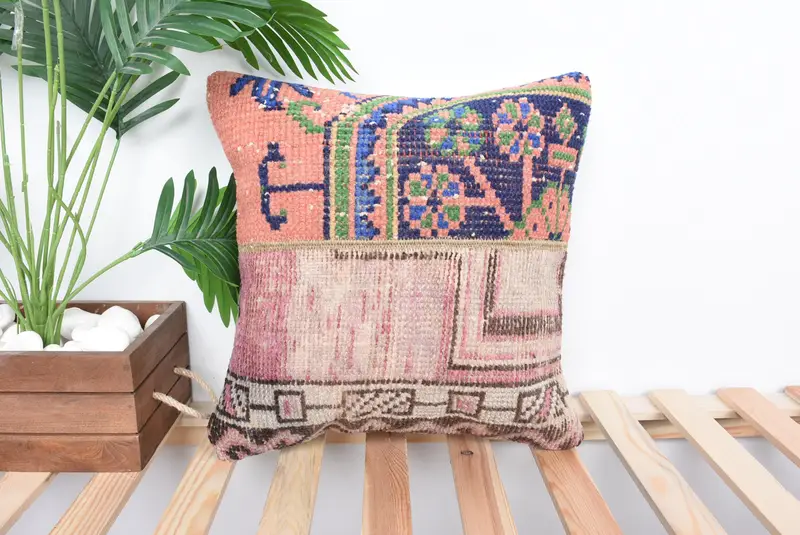 Rotes Patchwork-Wurfkissen, 16x16 besticktes Vintage-Kissen
