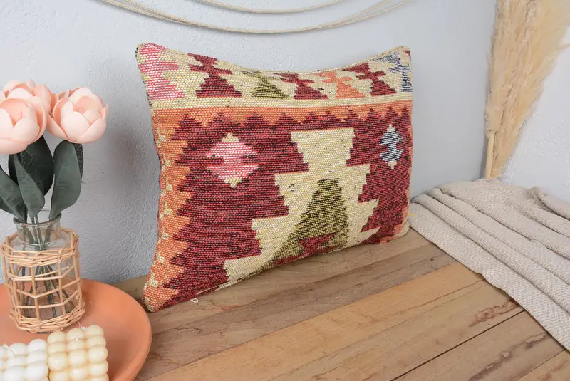 Rot & Grün besticktes Wurfkissen, handgemachtes geometrisches Kissen
