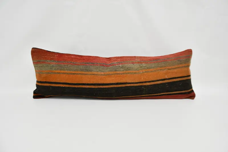 Orange & rot gestreiftes 12x36 Wurfkissen, Vintage handgemachtes Kissen