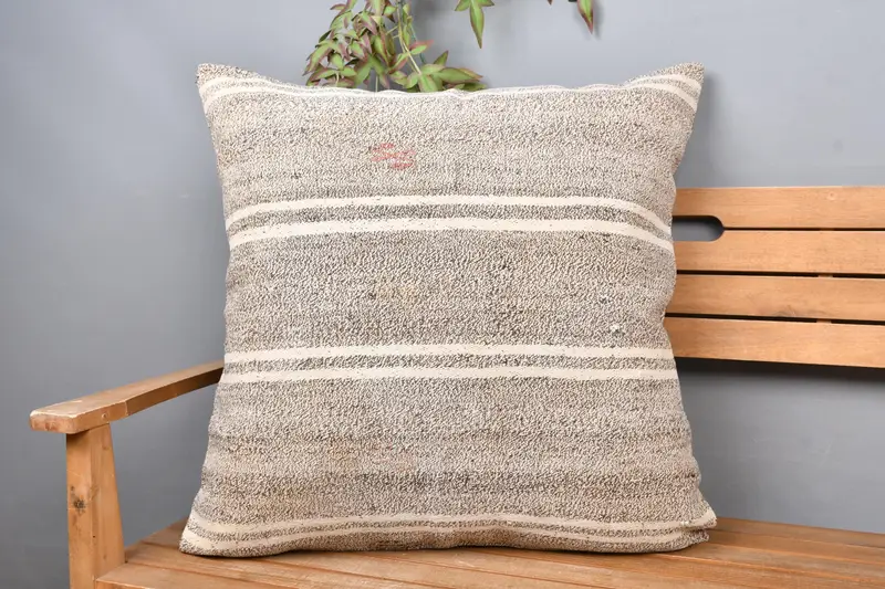 Beige-weiß gestreiftes Kissen, handgefertigtes besticktes Kissen