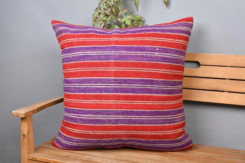 Rot-lila gestreiftes Kissen, besticktes Vintage-Kissen
