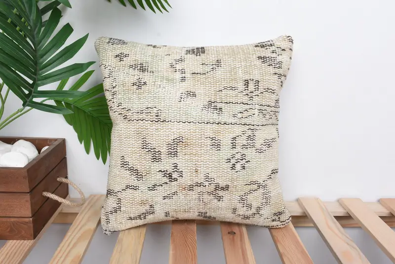 Beige & braun floral besticktes Wurfkissen, handgemachtes Vintage Kissen