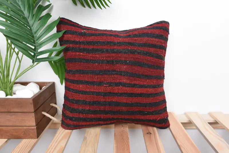 Rot-braun gestreiftes Kissen, handgefertigtes besticktes Kissen
