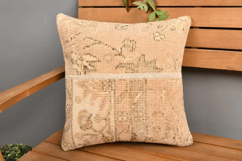 Beige & Rosa besticktes Wurfkissen, handgemachtes Patchworkkissen