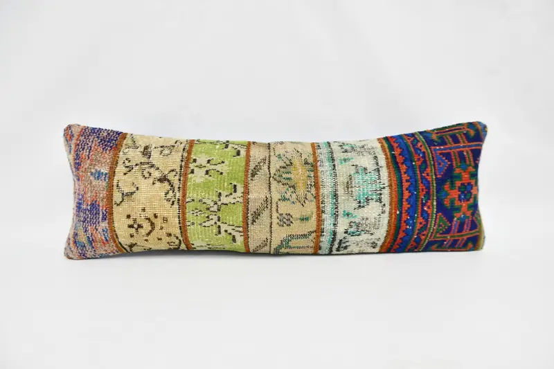 12x36 Grünes Hanfkissen mit bronzefarbenem Karomuster, Vintage-Wurfkissen