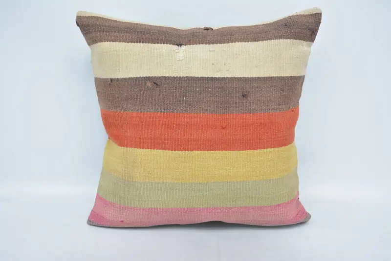 Grau-beige gestreiftes Wurfkissen, 24x24 besticktes Kissen
