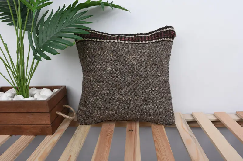 Graues südwestliches besticktes Kissen, 14x14 handgemachtes Wurfkissen