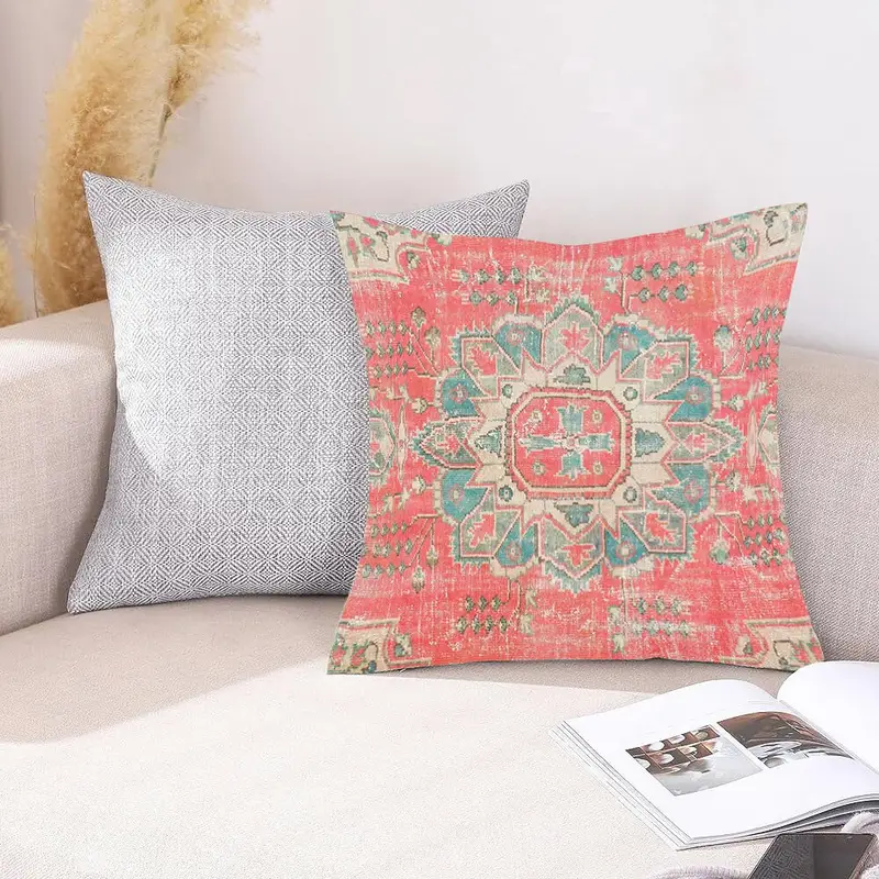 Handgefertigtes rotes Southwestern-Wurfkissen, Vintage besticktes rechteckiges Kissen