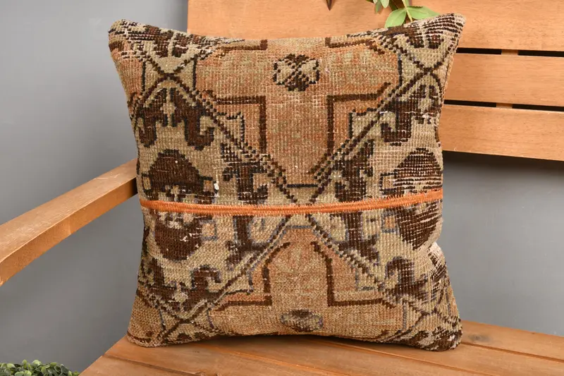 Beige-braunes Patchwork-Wurfkissen, 16x16 besticktes Kissen