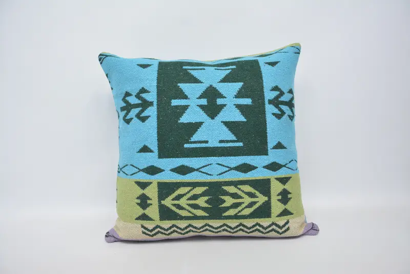 Handgefertigtes blaues und grünes Wurfkissen, 24x24 besticktes Kissen