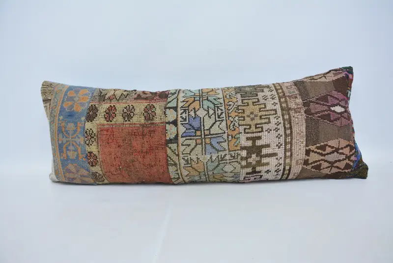 Rotes Hanf-Wurfkissen mit bronzenen Akzenten, besticktes Vintage-Kissen