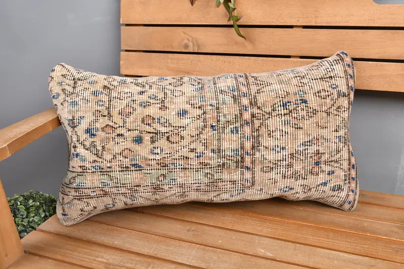 Beige & Bronze besticktes Kissen, 12x24 handgemachtes Wurfkissen