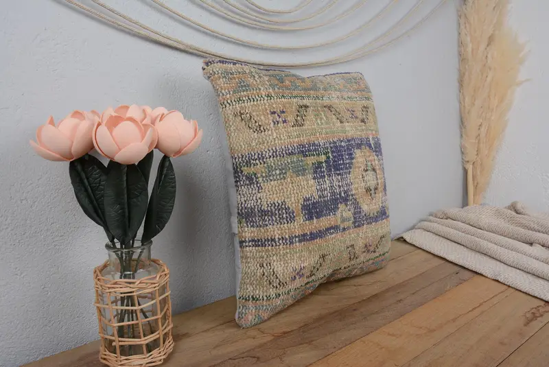 Grün & Bronze besticktes Kissen, 16x16 handgemachtes Wurfkissen