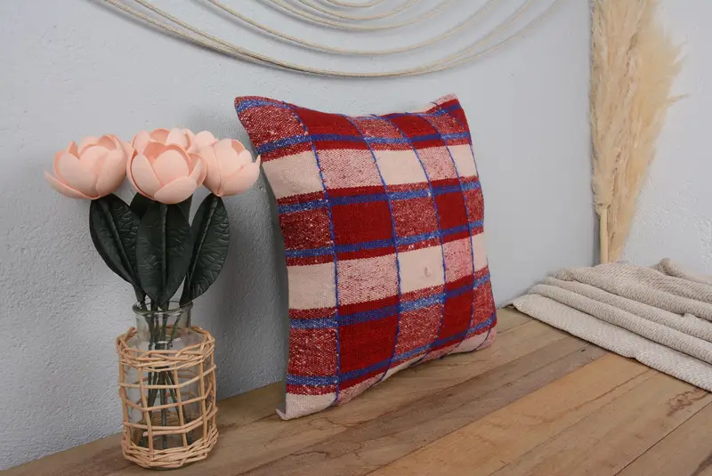 Rot & Bronze gestreiftes Wurfkissen, 16x16 besticktes Kissen