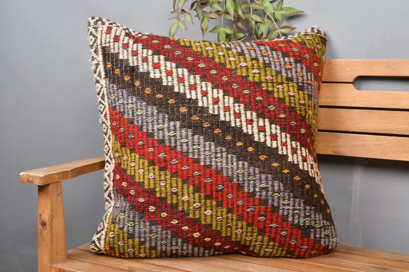 Rot-grünes geometrisches Kelim-Wurfkissen, 24x24 Vintage-Kissen