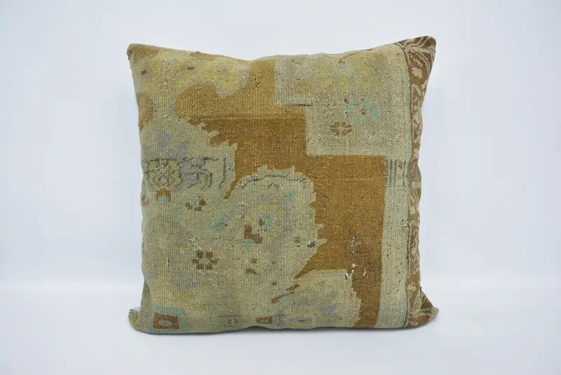 Handgefertigtes 32x32 braunes Hanfkissen, Vintage Blumenwurfkissen