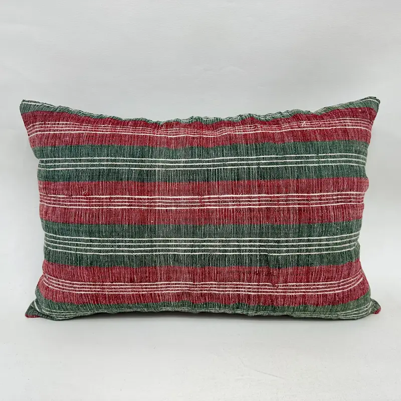 Rot-grün gestreiftes Kissen, Vintage besticktes Kissen