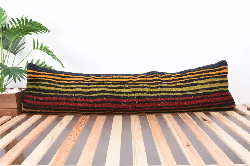 Rot-grün gestreiftes Kissen, handgefertigtes besticktes Kissen