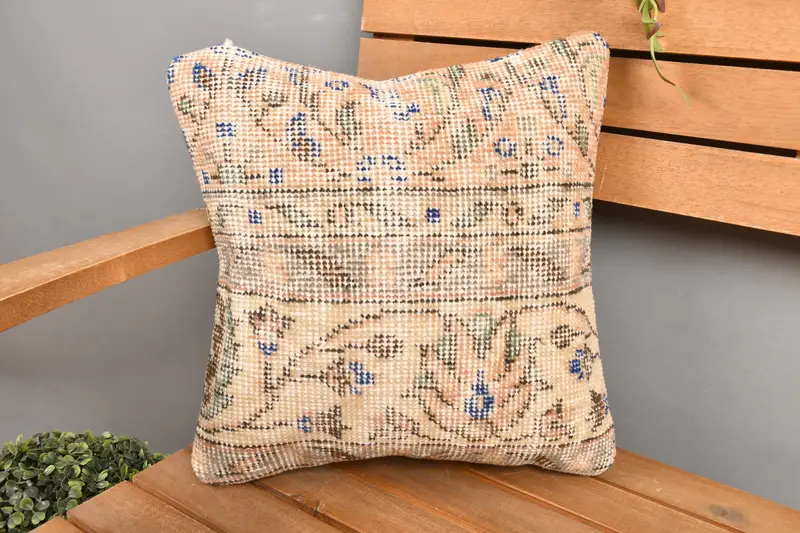 Gesticktes Blumen-Wurfkissen in Beige und Bronze, vielseitiges 14x14-Kissen