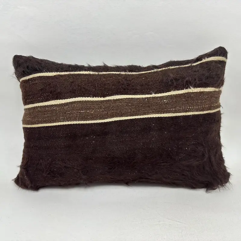 Braun & Beige gestreiftes Kissen, handgefertigtes besticktes Kissen