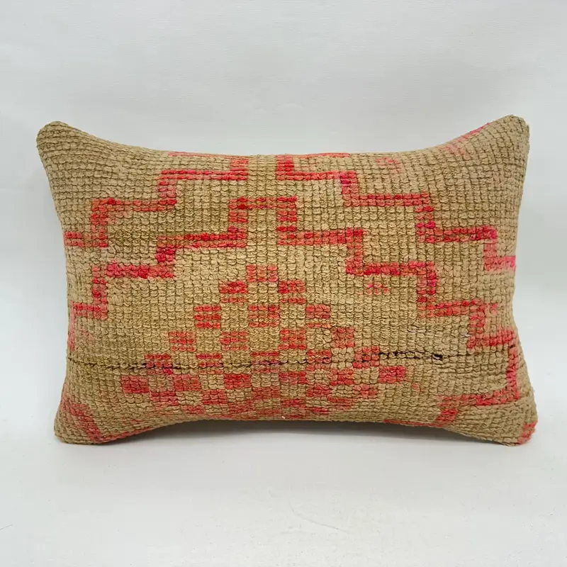 Beige & rotes Southwestern-Wurfkissen, 16x24 handgemachtes Leinenkissen