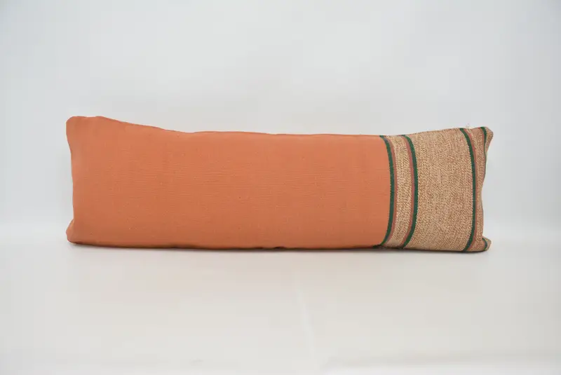 Orange & Beige gestreiftes Kissen, Vintage besticktes Wurfkissen