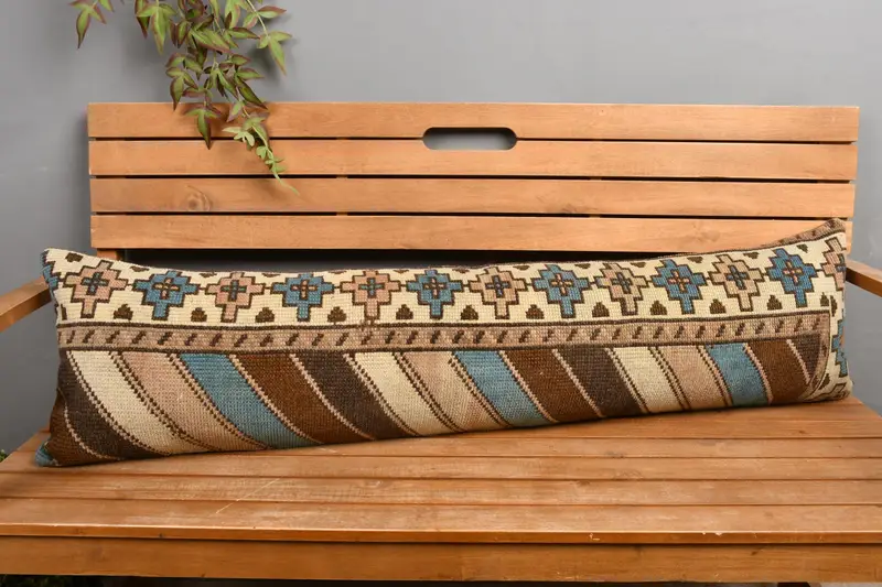 Blaues Southwestern besticktes Wurfkissen, handgemachtes Vintage Rechteckkissen