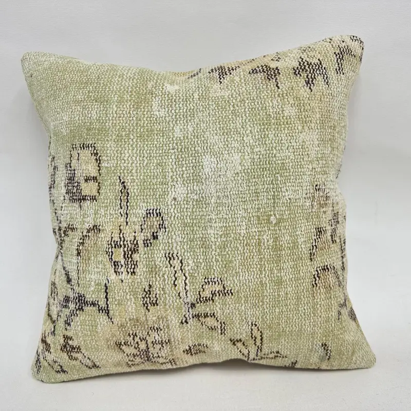 Handgefertigtes grünes Kelim-Wurfkissen, 20x20 besticktes Kissen