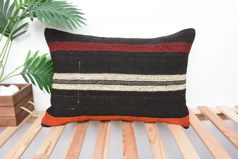 Braun-weiß gestreiftes Kissen, handgefertigtes besticktes Kissen