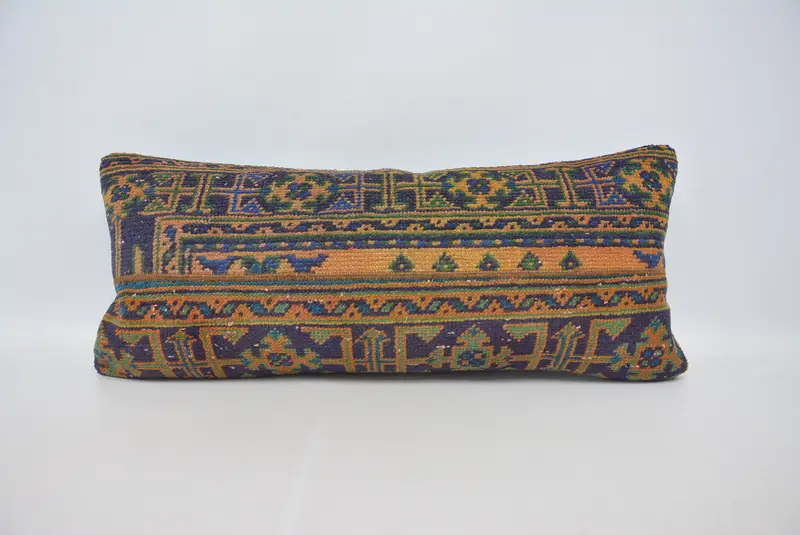 Handgefertigtes blaues und grünes Hanf-Wurfkissen, Vintage-Patchwork-Kissen