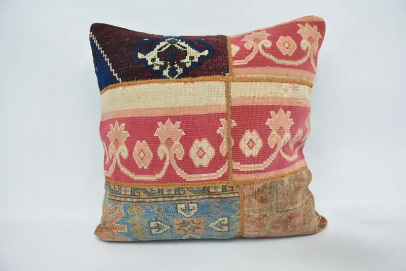 Handgefertigtes besticktes Ikat-Wurfkissen, Vintage-Kissen in Rosa und Bronze