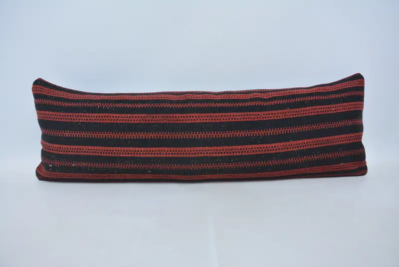 Rot & Braun gestreiftes Wurfkissen, 12x36 handgemachtes Kissen