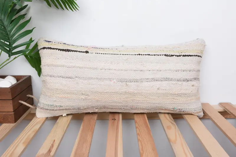 Handgefertigtes rechteckiges Kissen, 12 x 24 Vintage-Streifen-Design-Kissen