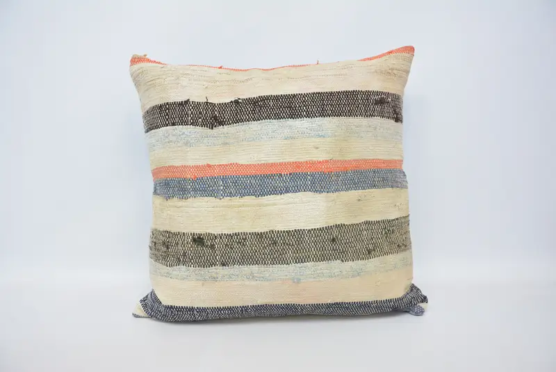 Beige & Bronze gestreiftes Wurfkissen, Vintage quadratisches Dekokissen