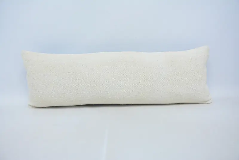 Beige bestickter Kelim-Kissenbezug, 12x36 handgemachtes Wurfkissen