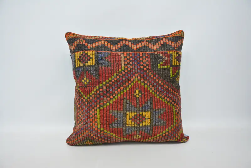 Rot & Grün besticktes Wurfkissen, 24x24 handgemachtes Kissen