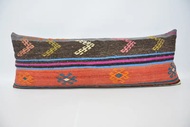 Orange & Bronze 16x42 Rechteckiges Wurfkissen, Vintage handgemachtes Kissen
