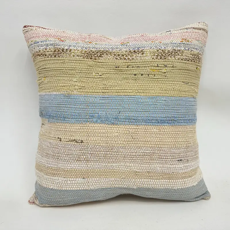 Handgefertigtes gestreiftes Leinenkissen, 20x20 besticktes Kissen