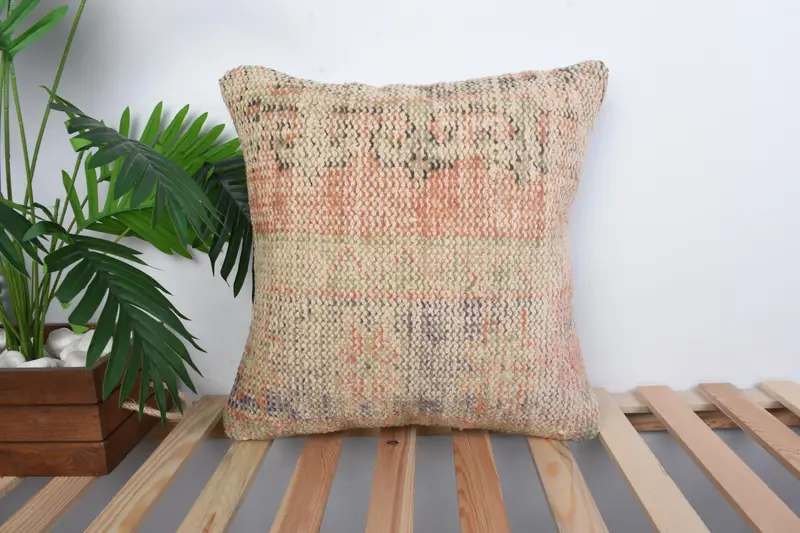 Geometrisches Kissen in Orange und Grün, handgefertigtes Vintage-Kissen