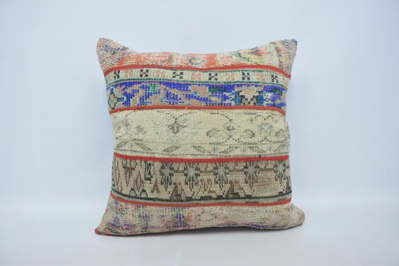 Beige & Bronze 28x28 besticktes Wurfkissen, Vintage Quadratisches Kissen