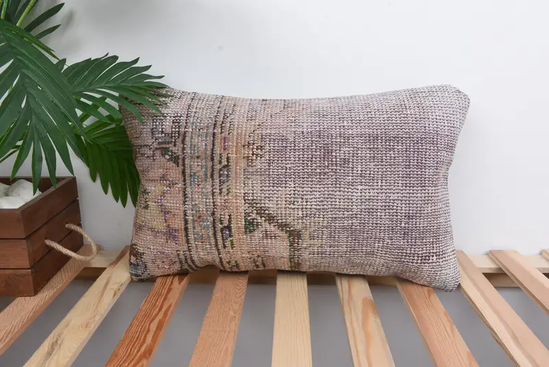 Graues und beiges Southwestern-Wurfkissen, handgefertigtes besticktes Leinenkissen