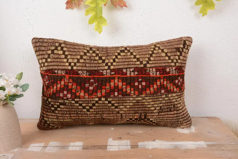 Rot & Beige 12x20 Patchwork Kissen, Vintage handgemachtes Kissen