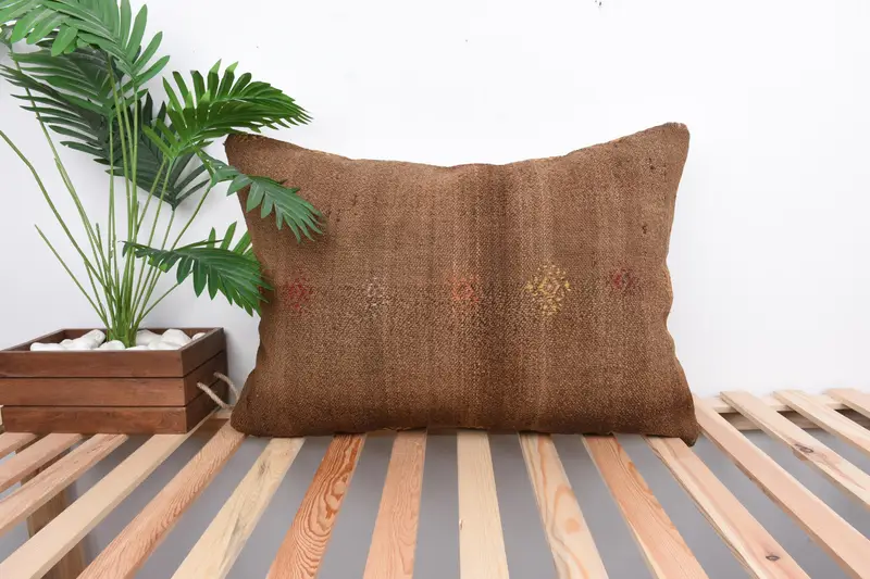 Braunes Southwestern besticktes Wurfkissen, handgemachtes Leinenkissen