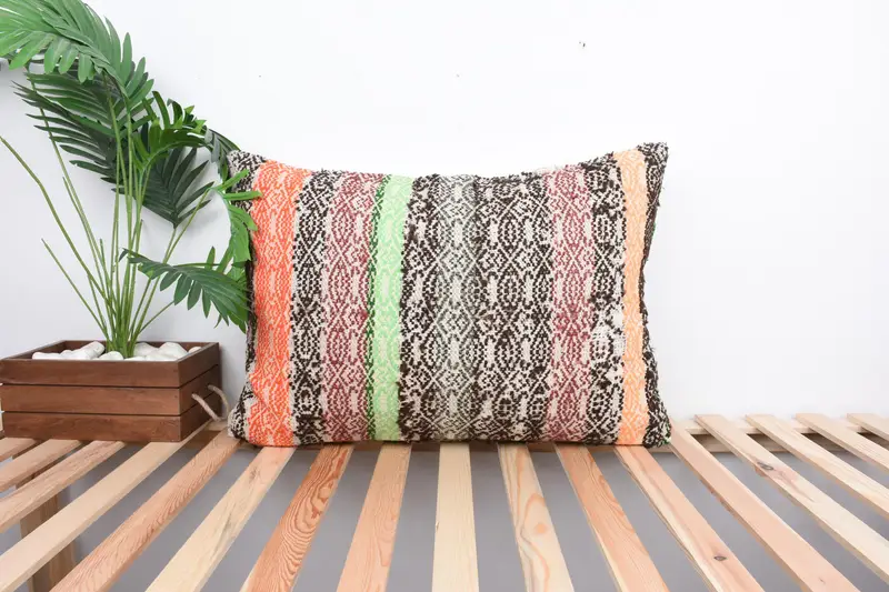 Geometrisches grün & orange besticktes Kissen, handgemachtes Vintage Wurfkissen