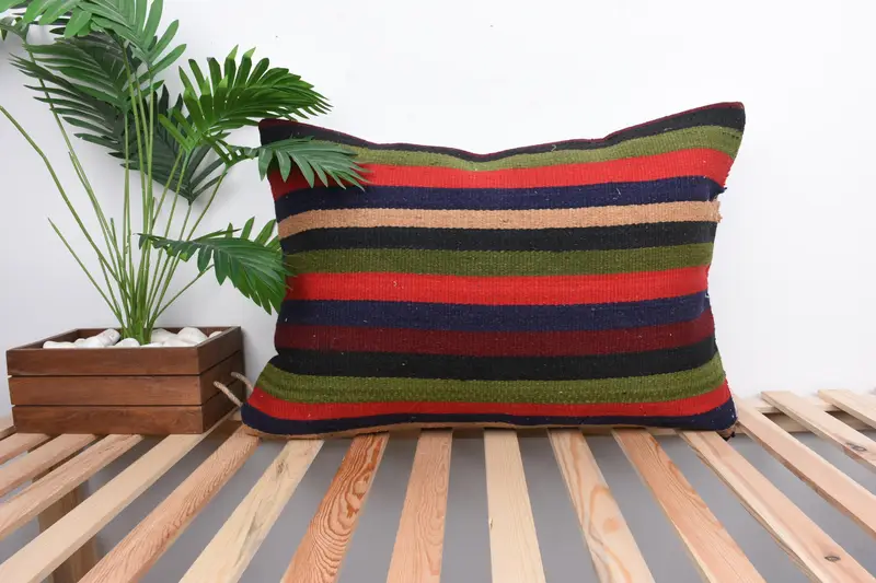 Rot-grün gestreiftes Wurfkissen, 20x28 besticktes Kissen