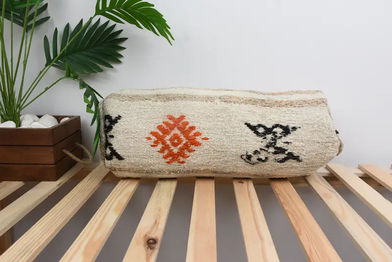 Handgefertigtes besticktes Baumwollkissen, Vintage weißes Kissen